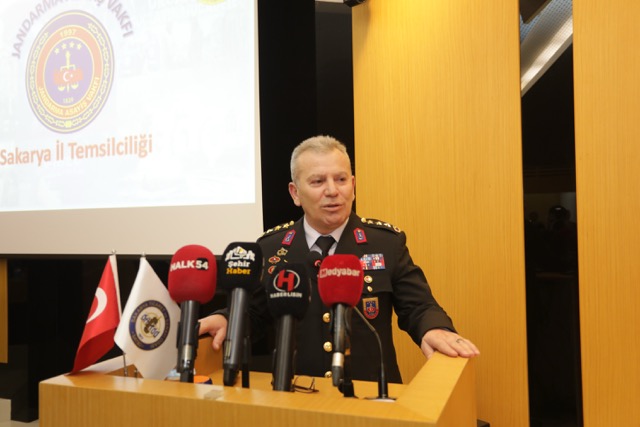 Meclis Başkanı Ercan’ın karşılama konuşmasının ardından kürsüye gelen Sakarya İl Jandarma Komutanı J. Alb. Nejdet KARACA, Jandarma Genel Komutanlığı’nın emniyet ve asayiş hizmetlerini güçlendirmek, şehit ailelerine destek sağlamak ve doğal afetlerde afetzedelere yardım ulaştırmak amacıyla her ilde kurulan Jandarma Asayiş Vakfı Sakarya İl Temsilciliği hakkında bilgiler paylaştı. İl Jandarma Komutanı Karaca şunları dile getirdi: “